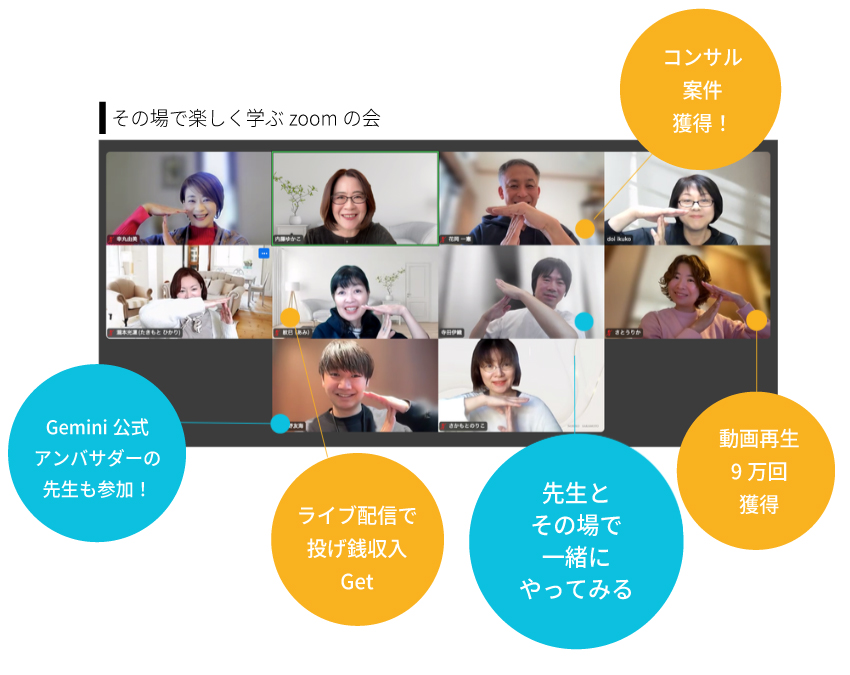 「分からないままで止まってしまった」ということも多くあります。 この講座では、無限質問BOX、コミュニティ運営の経験値を活かしたグルコン、作業部屋、わちゃわちゃの会の開催など「行動を止めない企画」が盛りだくさんです。